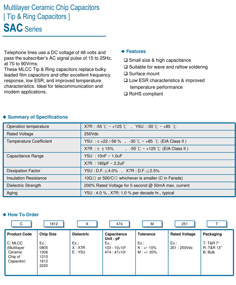 大尺寸贴片电容 SAC系列