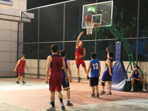 在这夕阳笼罩下的傍晚,我们已经如约来到了篮球场地。今晚,我们将会在这里与某单位决一雌雄!你们期待吗?反正小编我可是备好相机,期待不已呢!